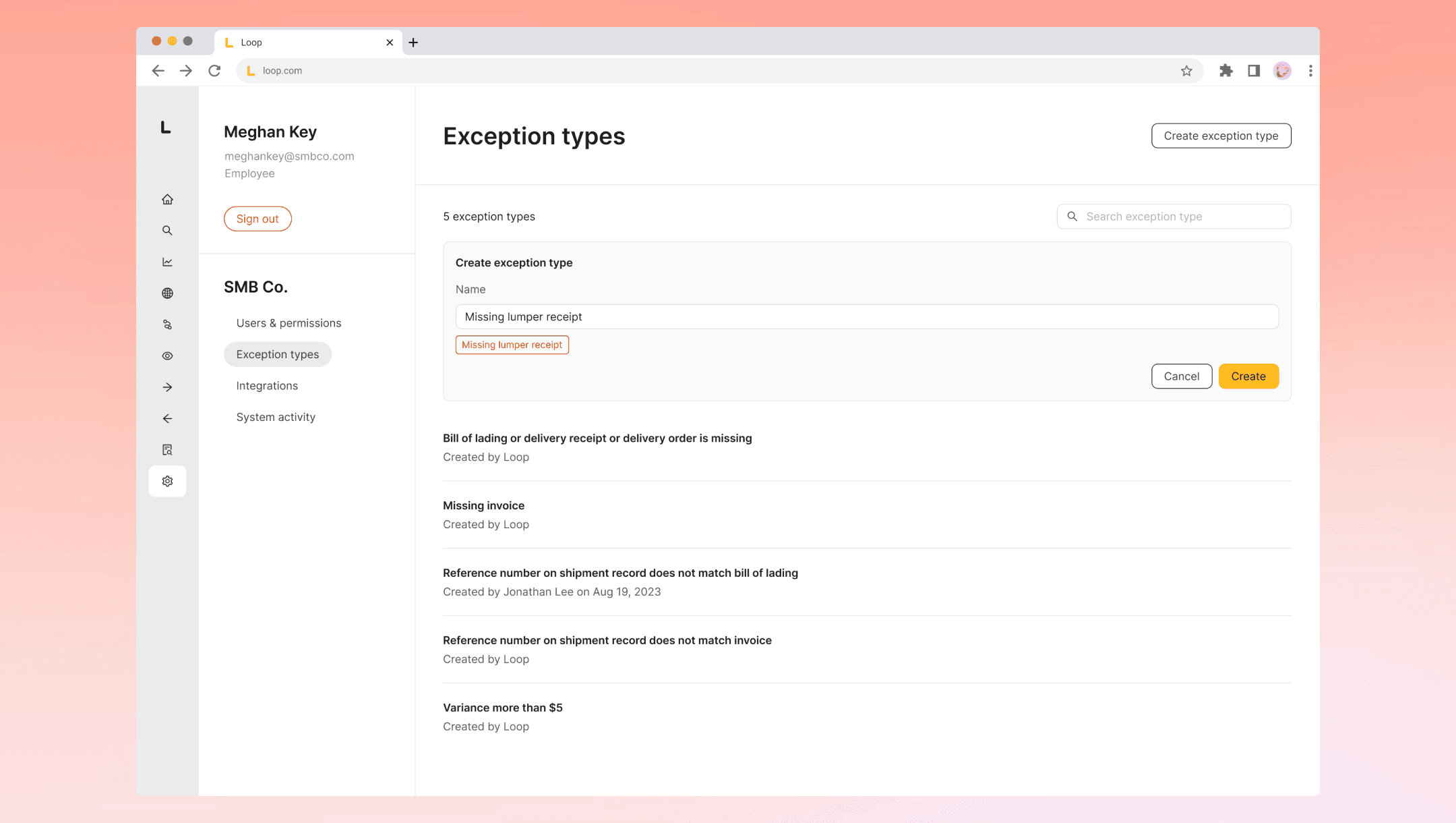Invoice processing often involves multiple coworkers. To help users better collaborate and improve processing times, we introduced an exceptions management tool where users can create exceptions on shipments and invoices to track and collaborate on outstanding issues. In addition, we leveraged automation to detect specific supported issues and create exceptions automatically for users, proactively flagging problematic shipments and invoices. I designed this feature from exception setup and management in settings to the presentation and resolution workflow. This new tool allowed users to focus and work together on shipments and invoices that needed their attention, enhancing in-app collaboration, issue tracking, and processing efficiency.